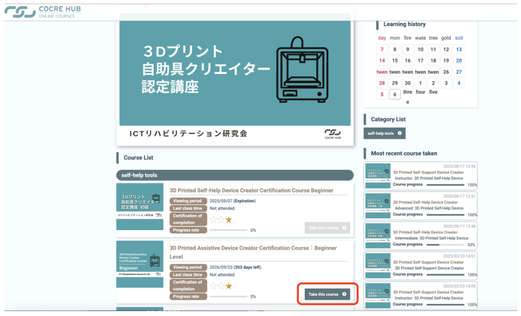 This certification course, provided by the ICT Rehabilitation Research Lab, is based on the fundamental use of the latest 3D printers and software. It is linked with COCRE HUB, making it a course where you can “create, use, and take it anytime, anywhere!”