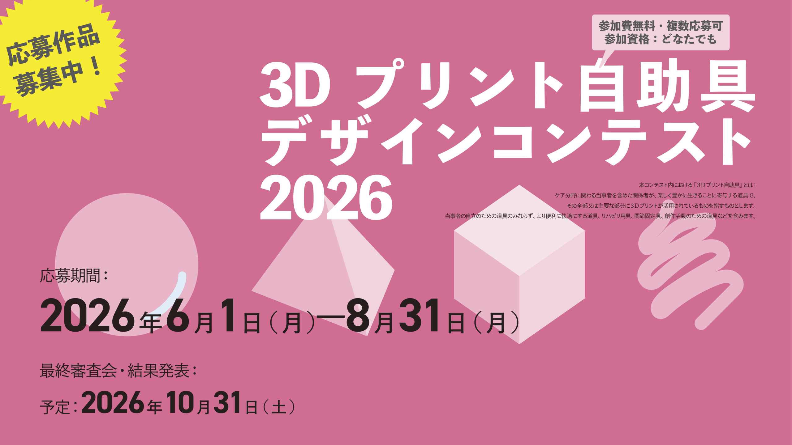 同コンテストを本年も「3D プリント自助具デザインコンテスト 2026」として開催することになりました。
