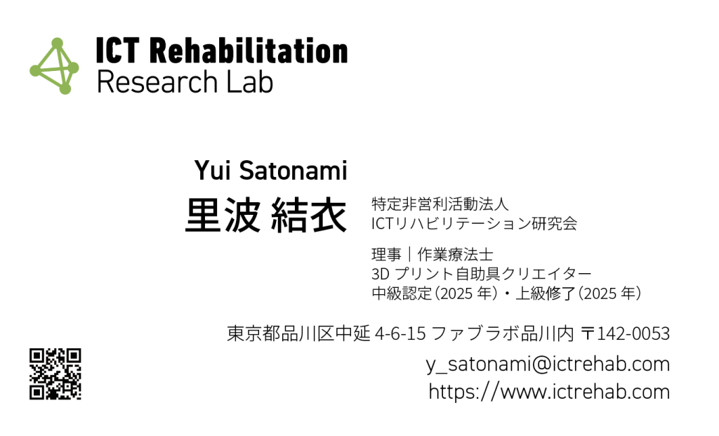 本講座の修了・認定に関して、受講者ご自身の名刺などに「3Dプリント自助具クリエイター 初級修了(2025年)」「3Dプリント自助具クリエイター 上級認定(2025年)」などの形で記載いただくことができます(取得年を必ず併記してください)。