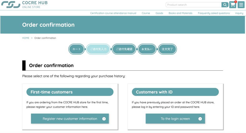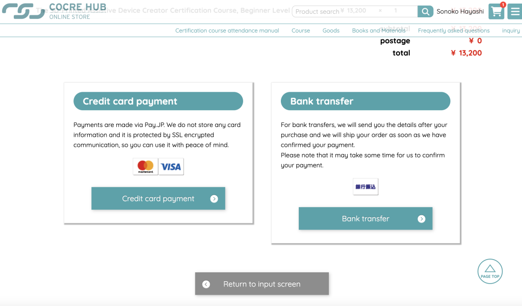 When you log in to the store with your registered ID and password, the payment screen will appear. You can pay by card or bank transfer.
