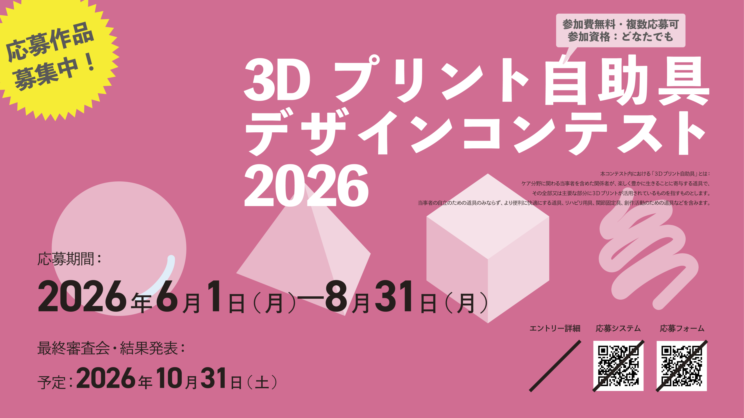 同コンテストを本年も「3D プリント自助具デザインコンテスト 2026」として開催することになりました。